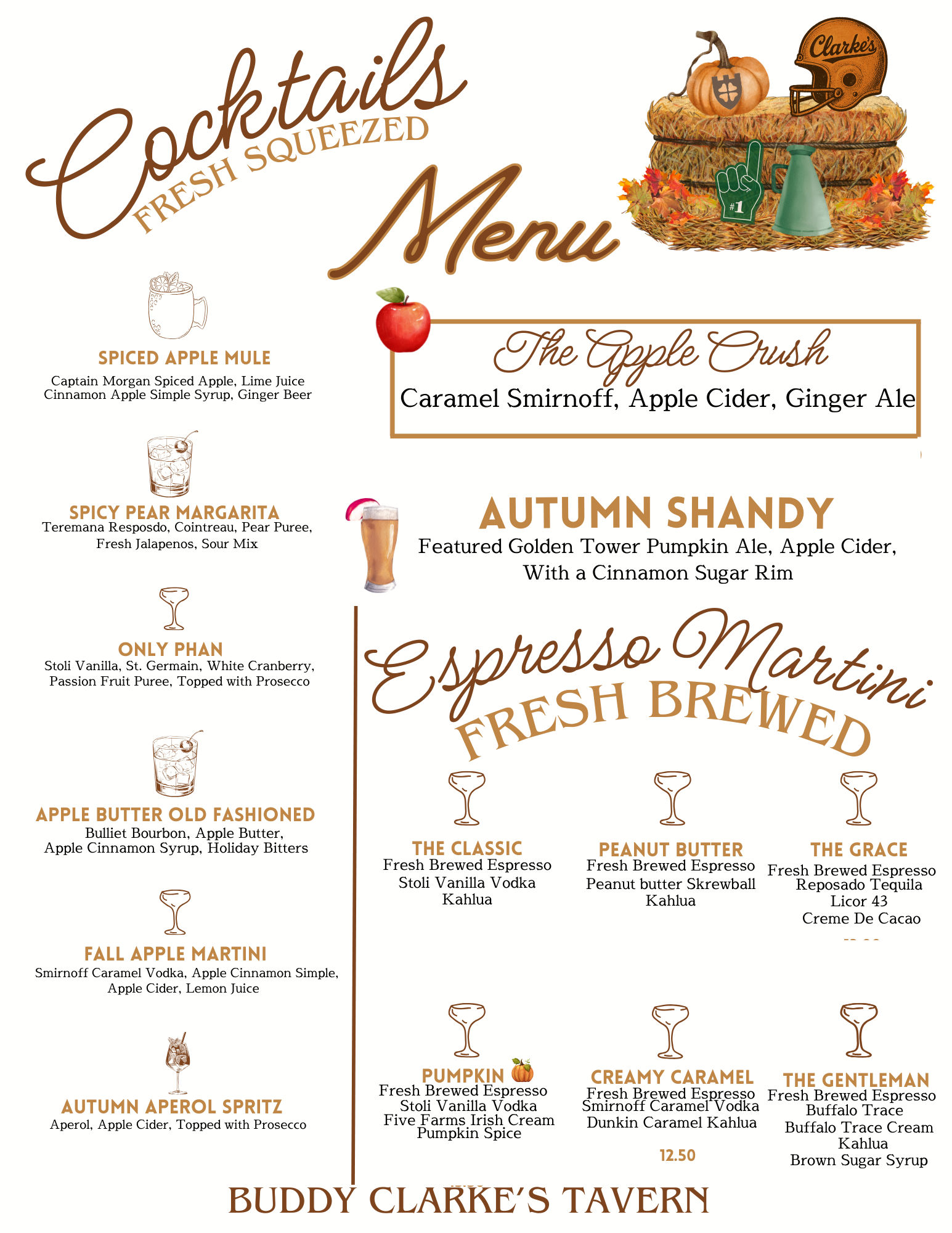 Fresh Brewed Espresso, Stoli Vanilla, Pumpkin Syrup, Kahlua, Five Farms Irish Cream